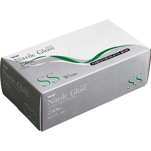 ニトリル 使いきり手袋 粉なし ホワイト SS 1セット(2500枚:250枚×10箱)