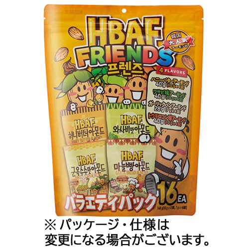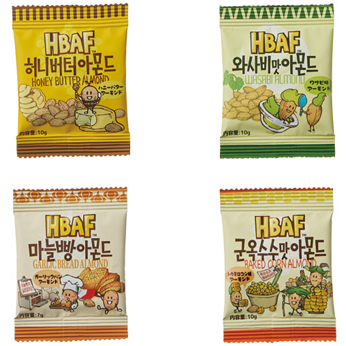 ●アソート内容/ハニーバターアーモンド、ワサビ味アーモンド、ガーリックパンアーモンド、トウモロコシ味アーモンド×各4袋