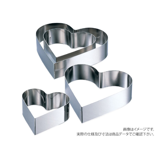 ケーキやムース、焼き菓子等を作る時や、お料理の盛りつけの時に大変便利なセルクル型。ハートの形に仕上がります。板の接合部分を溶接処理し、平らに加工しているので、継ぎ目が無く仕上がりがきれい。出来上がったお料理やお菓子に溶接の跡が付きません。各サイズ、リングの高さ違いをご用意しております。