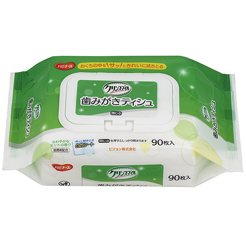●うるおい成分配合。ウエットタイプ、アルコール配合のハミガキティッシュ、90枚入。