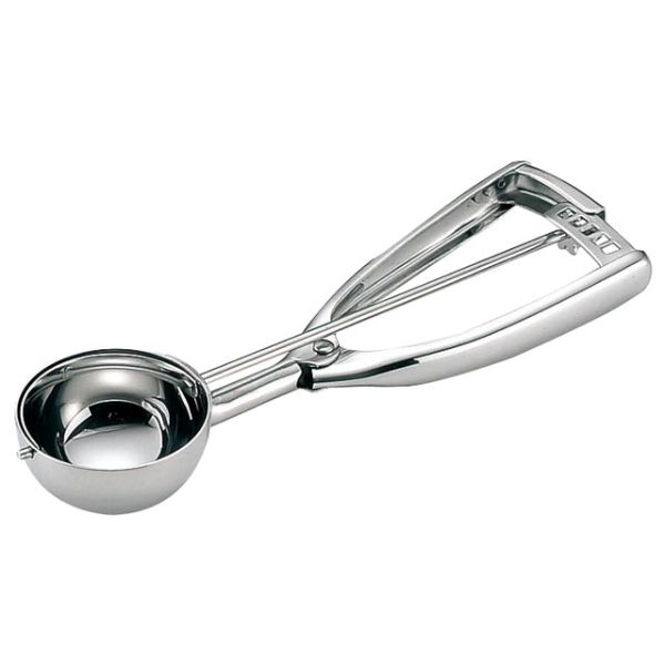 丸型のディッシャー。惣菜やアイスクリームをすくうのに最適です。※修理不可能です。サイズ:直径φ63mm材質:18-8ステンレス容量:80cc直径φ63mm