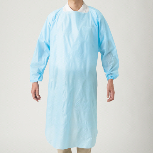 ポリエチ袖付エプロン フリーサイズ ブルー 1セット(200枚:10枚x20箱)