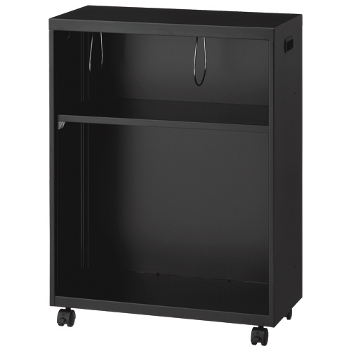 ●書類やファイル・メディアなどをしっかり収納できるW600×H800mmのオープンタイプファイルワゴン、色はブラックです。