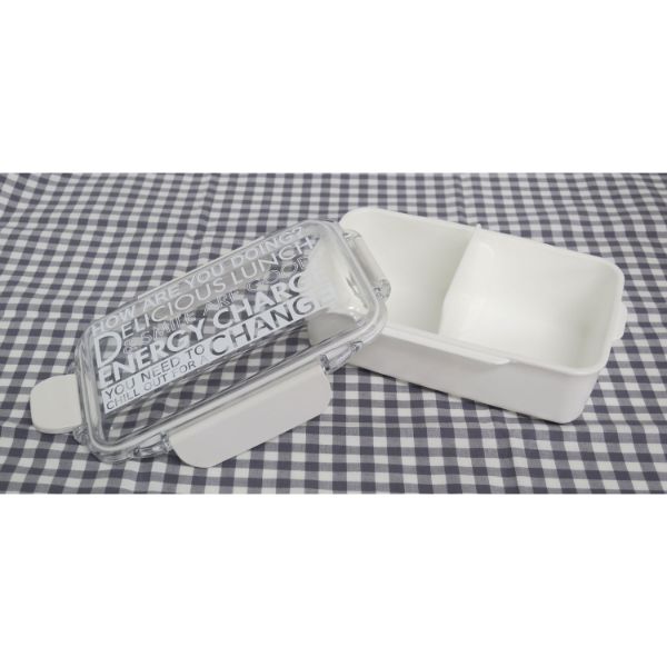フタがUPでおかずがつぶれにくい。どんぶり弁当や麺弁当もいつものお弁当もより美味しそうに盛れる!フタを外して電子レンジOK。食器洗浄機・乾燥機OK。仕切付き。日本製。サイズ:187×119×72mm/材質:[本体・仕切]PP、[フタ]AS、[止め具(大・小)]ABS/重量:186g/容量:650ml187×119×72mm
