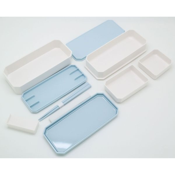 サイズ:170×74×75mm/材質:[本体・フタ・中子]AS、[仕切・シールフタ]PP、[箸]PMMA/重量:285g/容量:(上)260ml(下)340ml、中子(大)100ml(小)70ml