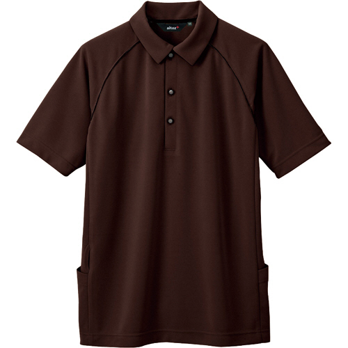 前かがみが多い作業に便利なバックサイドポケット付ポロシャツ。