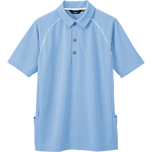 前かがみが多い作業に便利なバックサイドポケット付ポロシャツ。