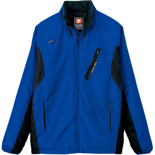 ●ロイヤルブルー×ブラックのMサイズ、スポーティデザインのフードイン中綿ジャケット。