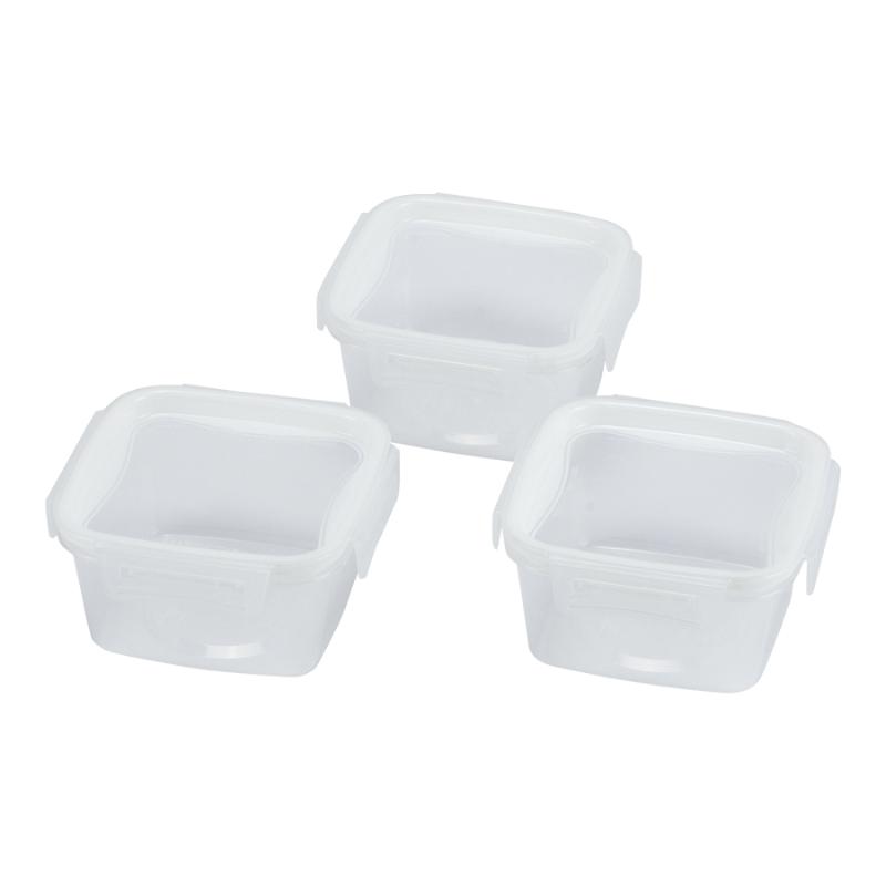 4方向からしっかりとロック。冷凍可能!ふたを外してレンジ可能!食洗機対応!便利な目盛り付!ふたとパッキンが一体なのでお手入れ簡単!サイズ:125×125×65mm材質:[本体]ポリプロピレン、[蓋]ポリプロピレン、エラストマー重量:57g125×125×65mm