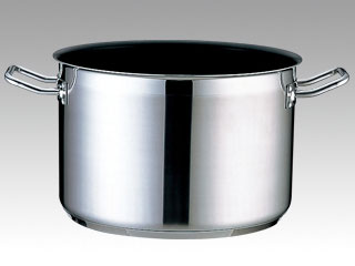 電磁調理器対応(IH対応)。業務用鍋。耐摩耗性が強いエクスカリバーコーティング加工。カレーやシチューのルーなど、こびりつき易い食材の調理に最適。洗い易くお手入れもカンタン。取手部分をスポット溶接、鋲止メの二重加工を施してあり、耐久性に優れています。滑りにくく、持ちやすさを追求したハンドル形状です。