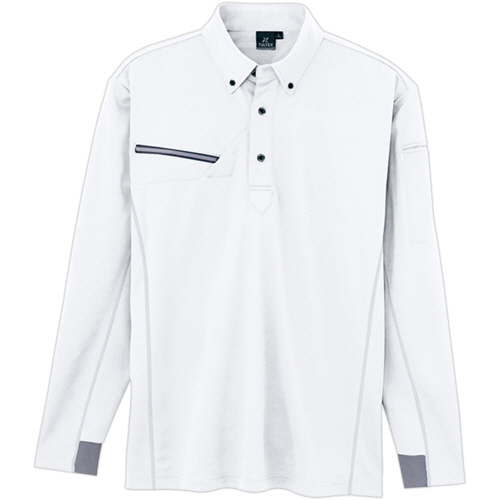 冷感プリント長袖ボタンダウンポロシャツ