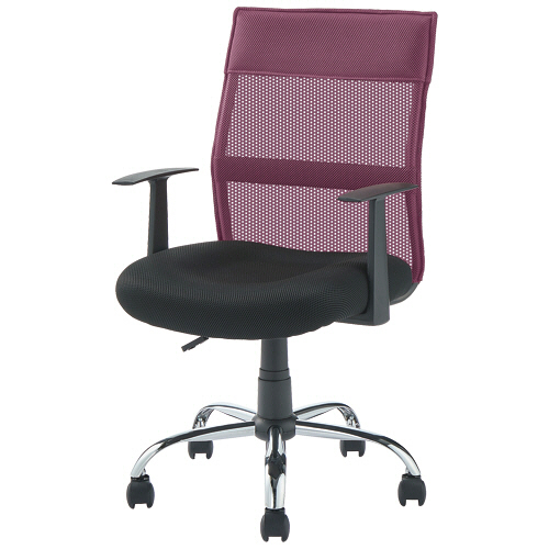 ●肘付、ミドルバックのオフィスチェアー。本体色はワインレッドです。