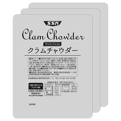 SSK Daliy Soup クラムチャウダー 160g/袋 1パック(3袋) 【5-8営業日遅延】