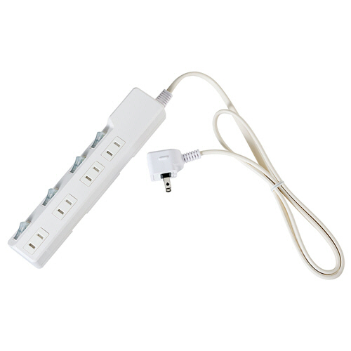 ●本体の置き方によって差込口の向きが選べる、4個口OAタップ。ケーブル長さは1mです。