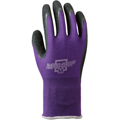 ●手のひらに天然ゴムをコーティング。抜群のやわらかさとともに、高いスベリ止め効果を発揮するLサイズのパープルのマッドグリップ10双パックです。