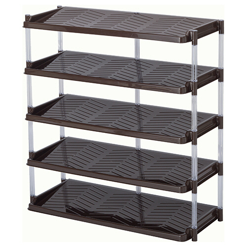 ●靴やスリッパなど最大15足(3足×5段)収納できる便利なシューズラック。色はブラウンです。