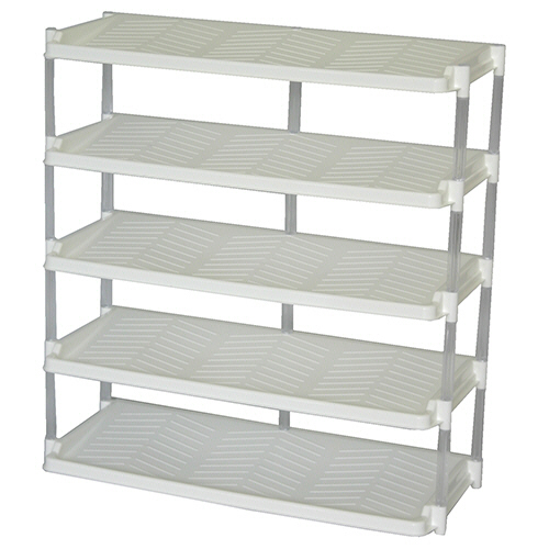 ●靴やスリッパなど最大15足(3足×5段)収納できる便利なシューズラック。色はホワイトです。