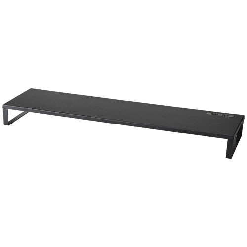 ●幅900mm、高さ85mmのコンセント付モニターラック。カラーはブラックです。