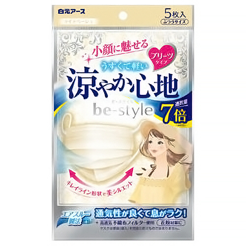 ●通気性がよくて息がラク!ムレにくく、軽やかなつけ心地の口もと素材(エアスルー製法)を採用しています。色はライトベージュ、5枚です。