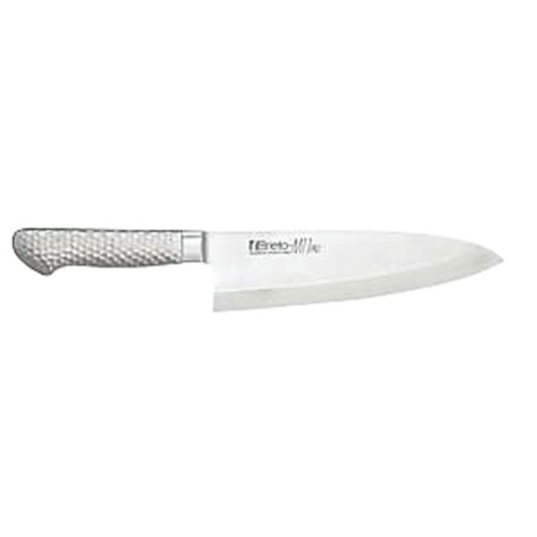 モリブデン・バナジウム鋼割込サビにくい13クロームステンレスに、刃物鋼では最高級のモリブデン・バナジウム鋼を刃部に割り込み、最新の設備と高度な技術で造り上げられた製品ですので、使い始めから本格的な切れ味のよさが得られます。 ハンドル部を空洞にし、軽くていつまでも美観を保つ「ステンレスモナカ構造」を採用(モナカハンドル)。