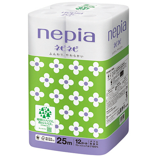 ●高密度ソフトエンボス加工で、やわらかい使用感のトイレットロール。ダブル25m巻・12ロール×6パック、無香料です。