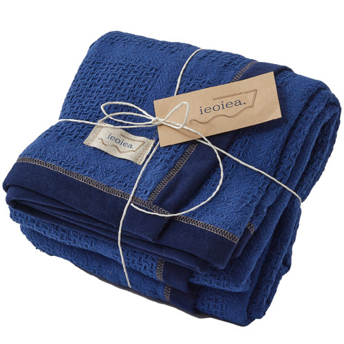 ●ジャガード織綿100%の肌掛けケット。シングルサイズ、色はダークブルーです。