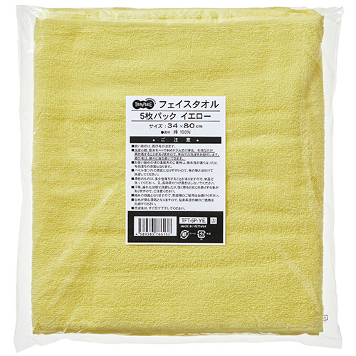 フェイスタオル イエロー 1パック(5枚) 【5-8営業日遅延】