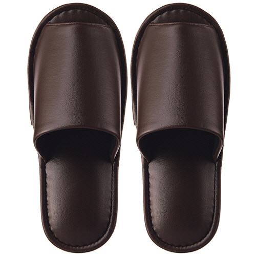 最高級レザー調スリッパ 外縫い ブラウン 1足