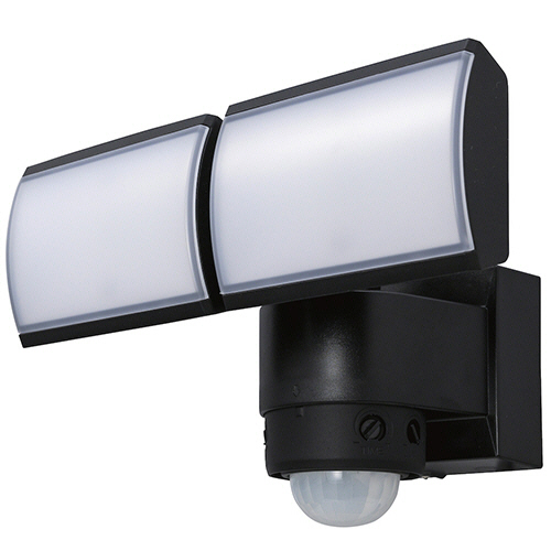 ●人や車の動きを検知して点灯する小型LEDセンサーライトの黒です。小型でも明るい2灯型(2000lm)。