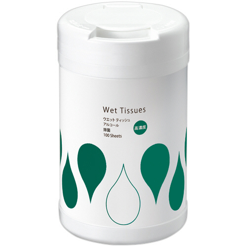 ●高濃度アルコール除菌ウェットティッシュ、ボトル本体・100枚×20本のセットです。