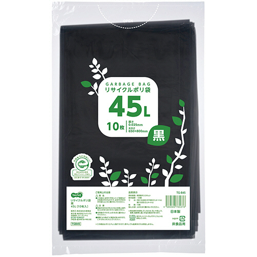 リサイクルポリ袋 黒 45L 1パック(10枚) 【5-8営業日遅延】