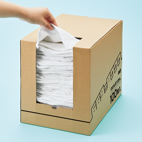 ●「引き出しやすさ」にひと工夫。保管棚や床上に置いて1枚ずつ引き出せるボックスタイプ。
