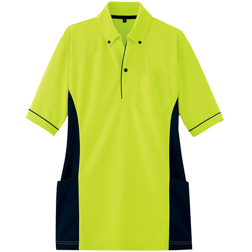 サイドポケット半袖ポロシャツ(男女兼用) ダンボールニット ライム Sサイズ 1着