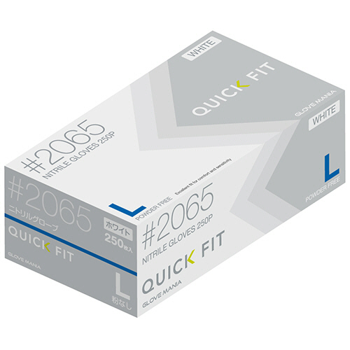 ●粉なし(パウダーフリー)加工の為、パウダーによる手荒れのリスクを抑えます。ホワイトのニトリルグローブ、Lサイズ・250枚入です。