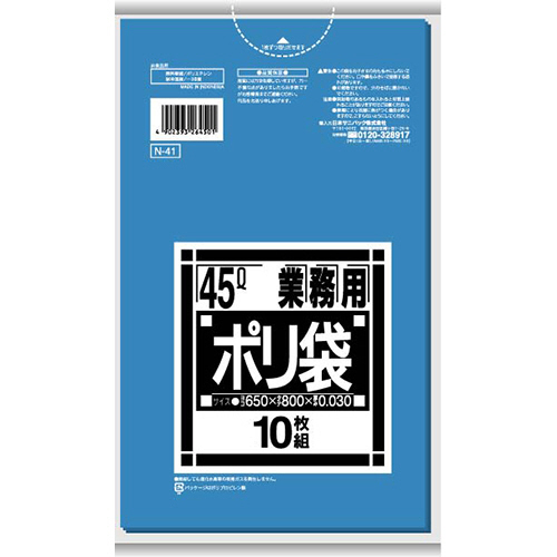 Nシリーズ 業務用ポリ袋 青 45L 0.030mm 1パック(10枚) 【5-8営業日遅延】