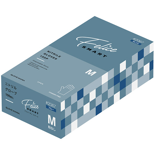●パウダーなしのニトリルグローブ。Mサイズ・色はブルー、100枚入です。