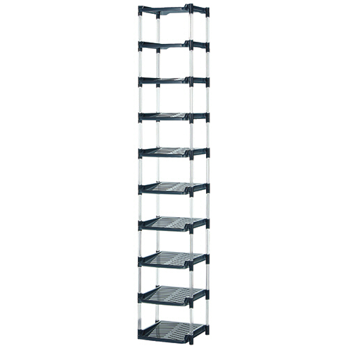 支柱が透明で高級感があり、省スペース有効活用できる便利なシューズラック10段