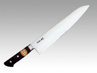 口金付・本刃付加工。日本鋼を使用、職人が丹精込めて造り上げた牛刀。サイズ:270mm材質:日本鋼270mm