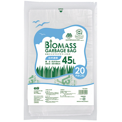 バイオマス25ポリ袋 白半透明 45L 1パック(20枚) 【5-8営業日遅延】
