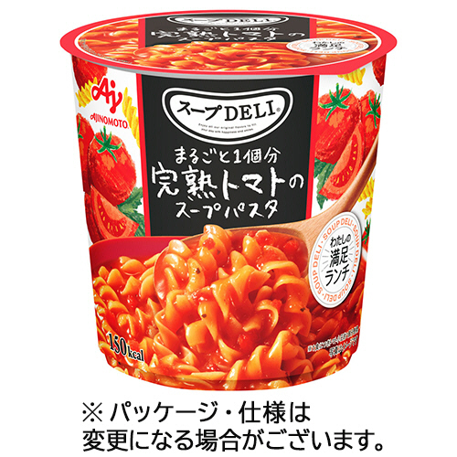 ●完熟トマトまるごと1個分(小玉約1個分)を使用したスープが、くるくるパスタにしっかり絡んで食べごたえのあるスープパスタ。カップタイプ、48食セット。