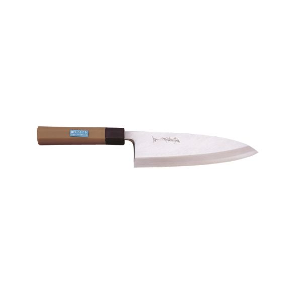 柄にプラスチック特殊樹脂を施した、衛生面と耐久性に優れた和包丁です。サイズ:刃渡210mm材質:モリブデン鋼、特殊樹脂六角半丸柄210mm