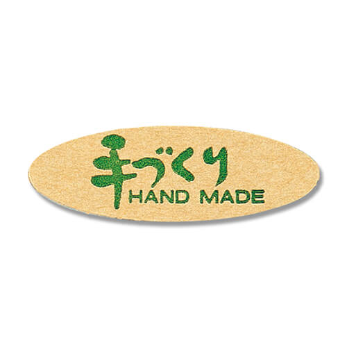 手作り菓子やクラフト作品の販売に。ナチュラルな半晒クラフトにグリーンの手書き風文字で、手作り感をイメージさせます。