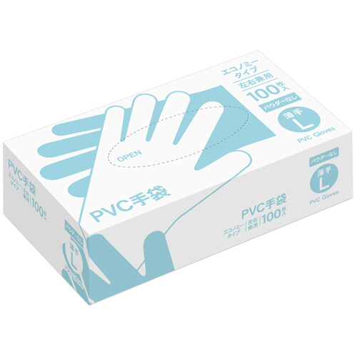 ●パウダーフリーのPVC手袋。Lサイズ、100枚入です。