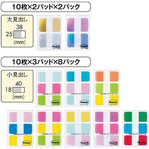●1パックあたり/40×18mm:10枚×3パッド×8個、38×25mm:10枚×2パッド×2個