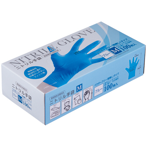 ニトリル手袋 パウダーフリー M ブルー 1箱(100枚) 【5-8営業日遅延】