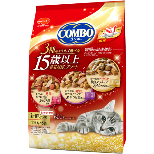 ●15歳以上の腎臓の健康維持を考えカルシウム、リンを調整。食物繊維で毛玉スッキリの3種アソート。