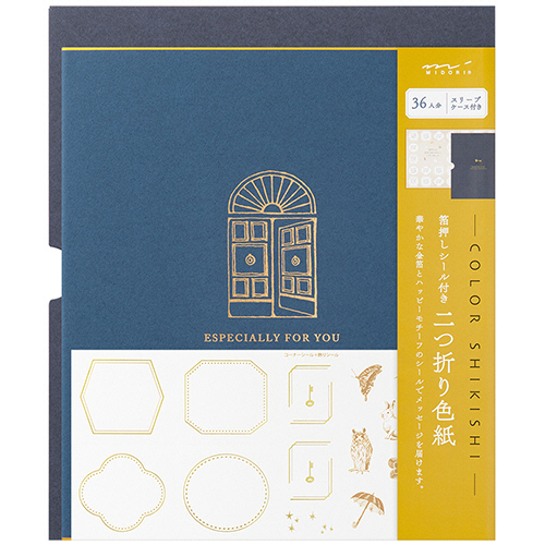 カラー色紙 二つ折り スリーブケース・シール付 扉 紺 1セット(2枚) 【2-4営業日遅延】