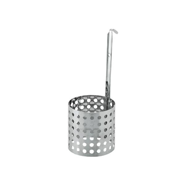 サイズ:直径φ100×高さ100mm、パンチング穴φ8mm、ハンドル15cm材質:18-8ステンレス直径φ100×高さ100mm、パンチング穴φ8mm、ハンドル15cm