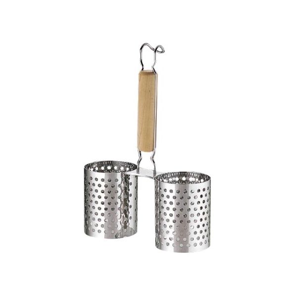 2連のかき揚げリングです。かき揚げに最適です。サイズ:直径φ80×高さ100mm、パンチング穴φ5mm材質:18-8ステンレス直径φ80×高さ100mm、パンチング穴φ5mm