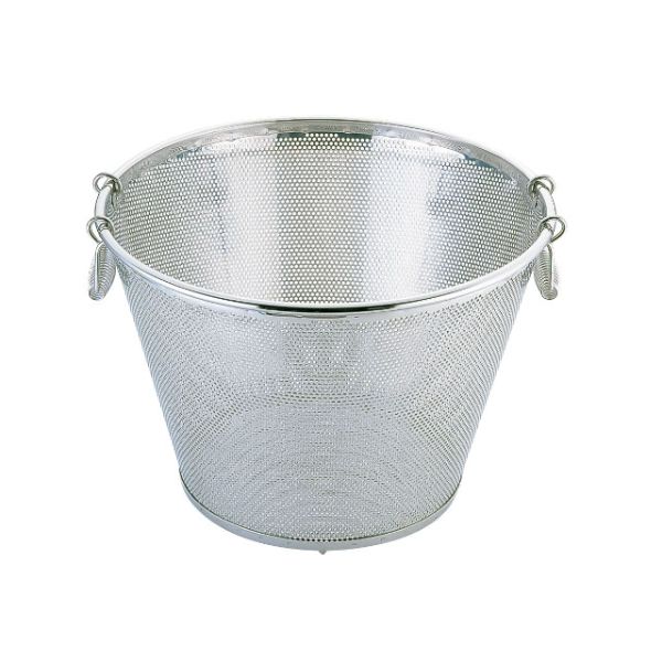 水やスープ等の液体を切るのに便利です。取っ手が付いて持ち易いです。サイズ:直径φ420×高さ310mm材質:18-8ステンレス直径φ420×高さ310mm
